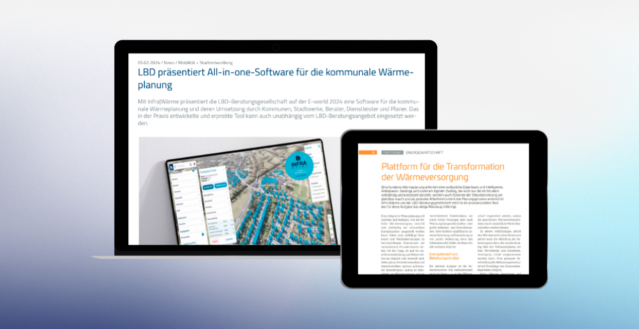 Sascha Schlosser, Geschäftsführer der LBD, beschreibt INFRA|Wärme als digitalen Zwilling zur Unterstützung der klimaneutralen Wärmeplanung. Detaillierte Features sind in Business Geomatics beschrieben.